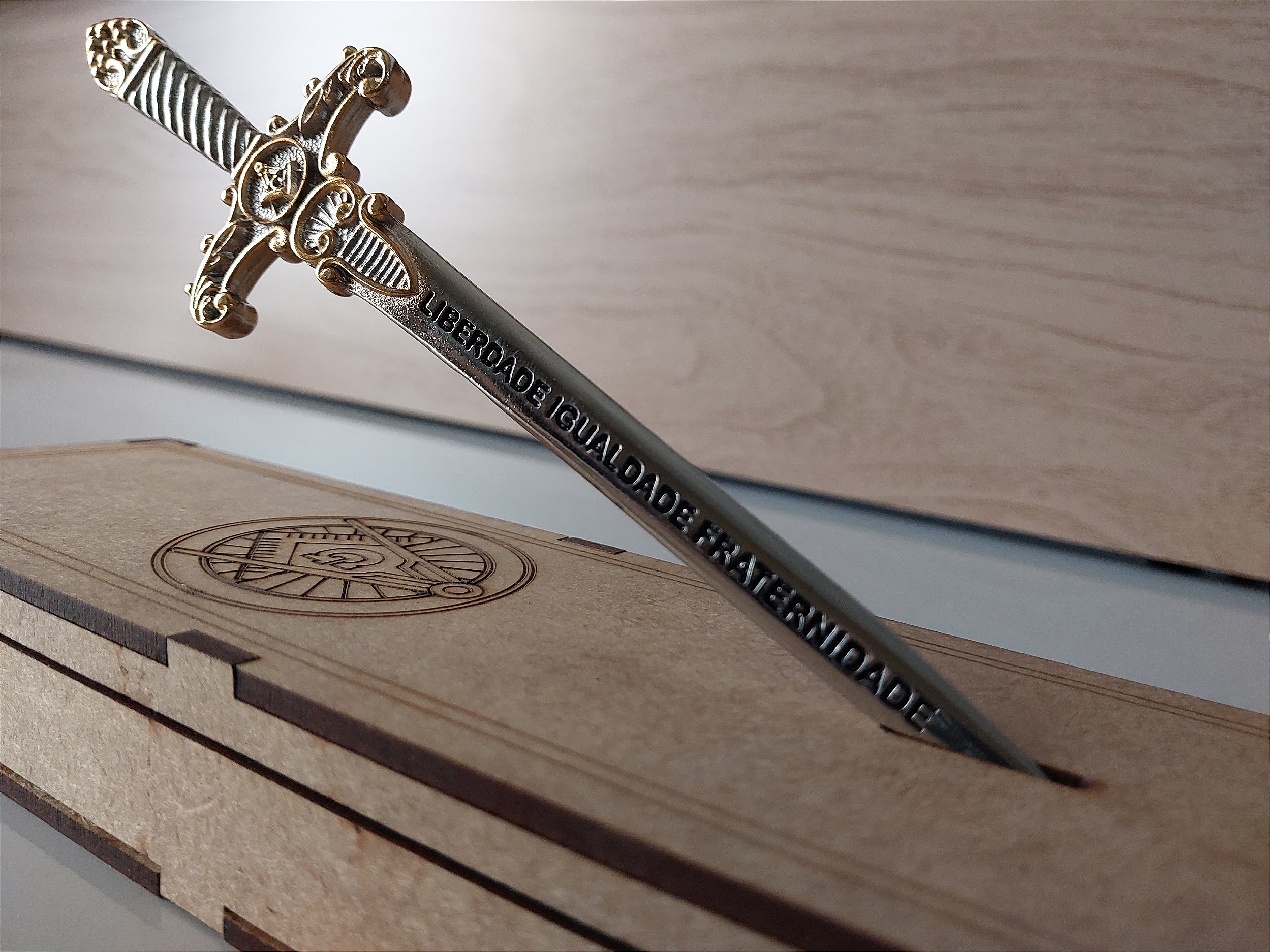 Mini Espadinha maçônica confeccionada em Material Zamac e com detalhes pintura em ouro.
